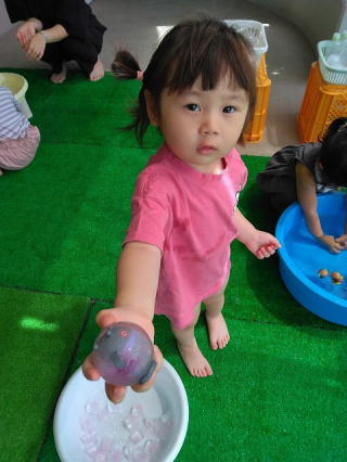 氷遊びも大人気!マスコットが入った氷を両手でそっと触ってみたり、水に入れて溶かしてみたり。