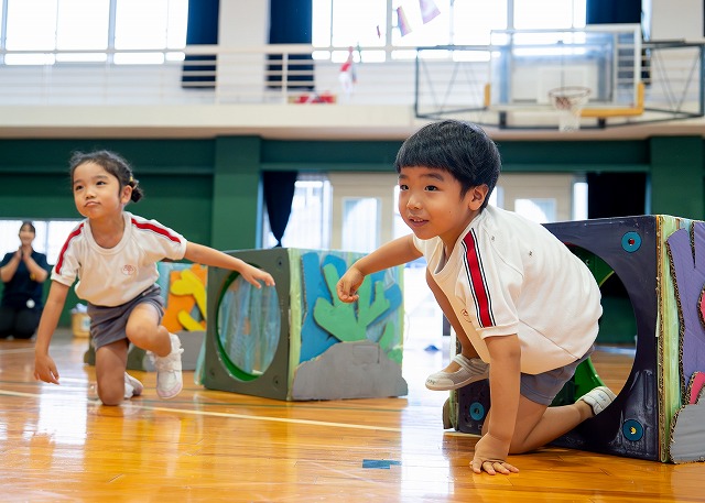 2・3歳は体を動かす楽しさを、4・5歳はお友達と一緒に力を合わせる面白さを存分に味わいました。