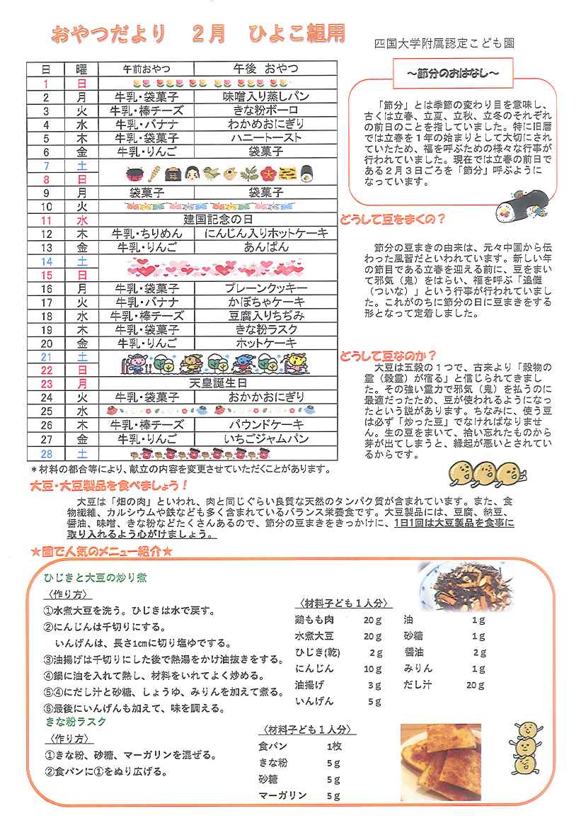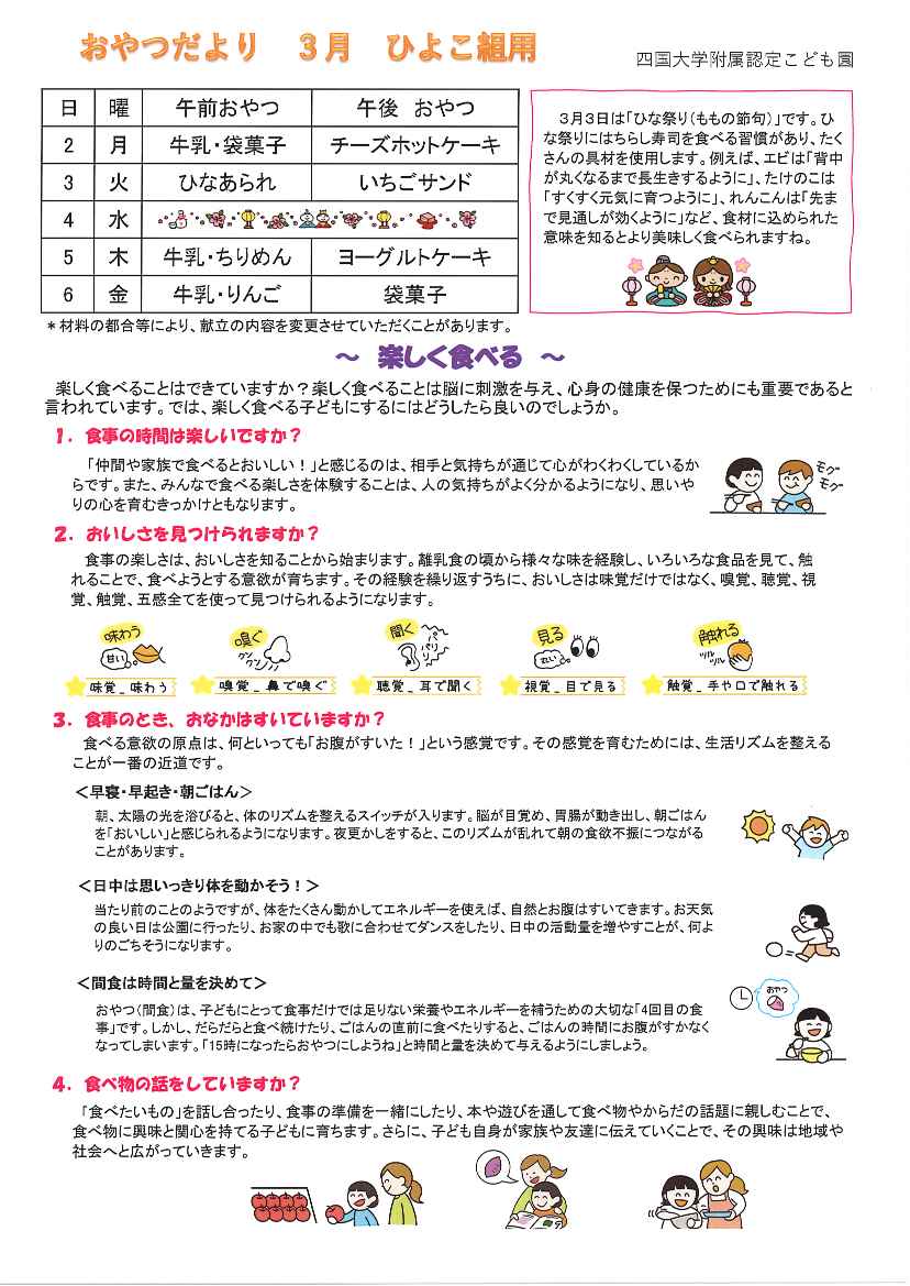 手作りおやつは季節を感じたり五感で楽しんだりできるよう配慮しています。