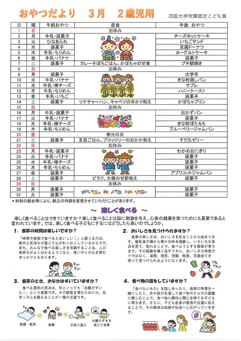 手作りおやつは季節を感じたり五感で楽しんだりできるよう配慮しています。